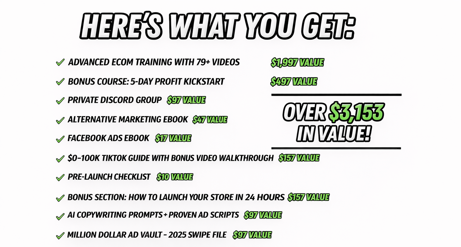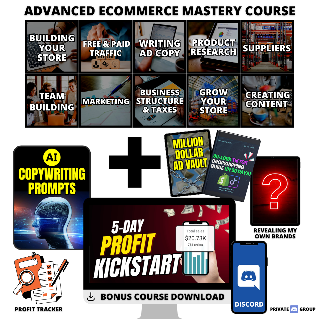 By signing up today, you'll learn how to build a successful dropshipping business that can provide you with financial freedom and the potential for a 7-figure store. You'll discover how to choose the right products, establish strong relationships with suppliers, and develop effective marketing strategies (both free & paid) that will drive traffic and sales to your store.